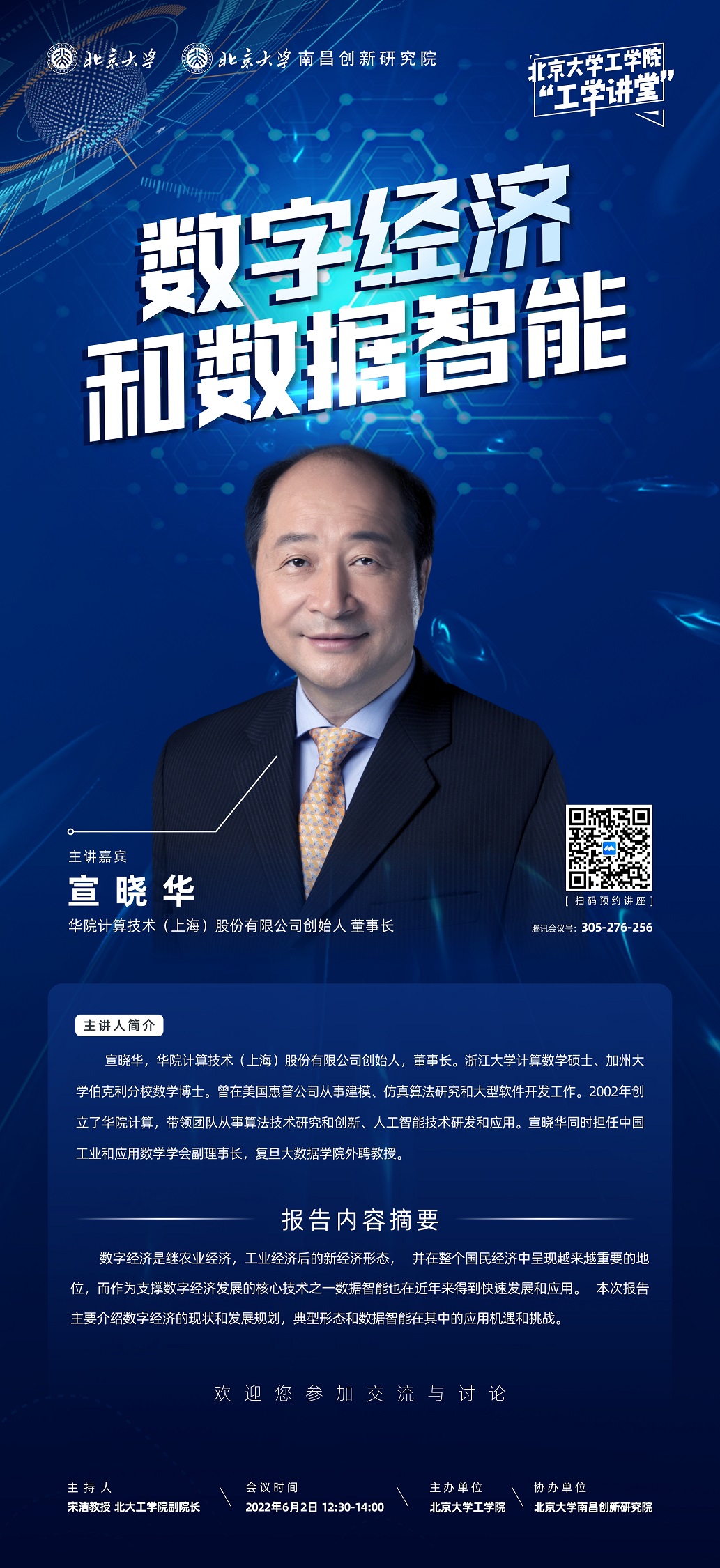 宣晓华,华院计算技术(上海)股份有限公司创始人,董事长。浙江大学计算数学硕士、加州大学伯克利分校数学博士。曾在美国惠普公司从事建模、仿真算法研究和大型软件开发工作。2002年创立了华院计算,带领团队从事算法技术研究和创新、人工智能技术研发和应用。宣晓华同时担任中国工业和应用数学学会副理事长,复旦大学大数据学院外聘教授。
