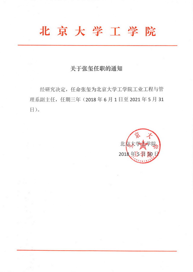 关于张玺任职的通知