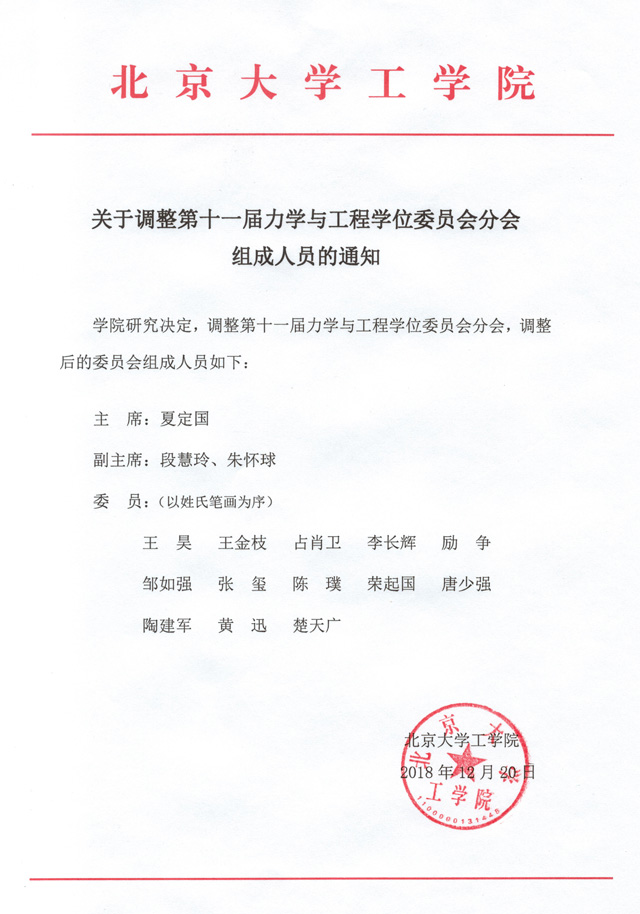 关于调整第十一届力学与工程学位委员会分会组成人员的通知