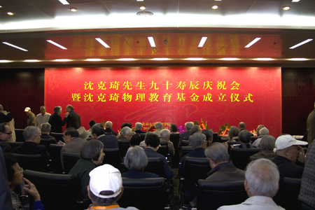 中国科学院、中国物理学会、全国中学生物理竞赛委员会、教育部考试中心、物理杂志、高等教育出版社、清华大学、北京师范大学、首都师范大学,北大教育基金会、微电子所、遥感所、物理学院等单位,沈克琦先生的家属、学生等近200人参加了庆祝会。