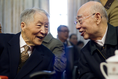 沈克琦先生认真准备了讲话稿,他对诸位学生、同仁、亲朋好友莅临庆祝会深表谢意。他深情回忆了当年饶毓泰等前辈师长对自己的关怀和指导,回顾了曾经一度的艰苦岁月,谈到文革中众多师友给予的亲切关怀和无私帮助,让他终生难忘。他同时表示,现在环境与过去大不相同,胡乱批判已成往事,因此,要进一步传承独立之思想、自由之人格的北大精神,要努力培养更多创新型人才,引领社会进步,助力国家发展。他还强调,刚成立的物理教育基金很有意义,一定要将其作用发挥好,促进物理人才的培养。