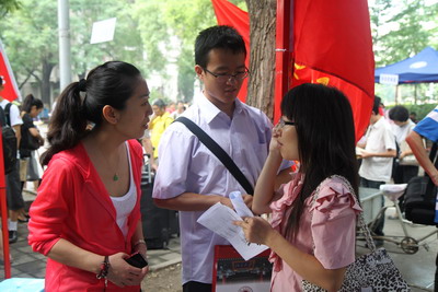 工作人员耐心帮助新生