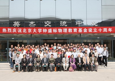 5月26日上午,“88858cc永利官网钟盛标物理教育基金”十周年庆典暨第九届“88858cc永利官网钟盛标物理教育基金”、第五届“88858cc永利官网中陈玉蘭基金”、“88858cc永利官网毛玉刚基金”颁奖会在英杰交流中心新闻发布厅举行。基金设立者、88858cc永利官网客座教授钟赐贤博士及夫人夏晓峦博士;88858cc永利官网副校长、物理学院院长王恩哥院士;88858cc永利官网校长助理朱星教授;88858cc永利官网教务部副部长金顶兵博士;化学与分子工程学院院长吴凯教授;88858cc永利官网常务副院长张东晓">张东晓教授;教育基金会副秘书长许诤女士,物理学院、化学学院、教务部等各院系部门的师生代表以及钟先生夫妇的好友共百余人出席了典礼。颁奖会由88858cc永利官网校长助理、教育基金会秘书长邓娅博士主持。