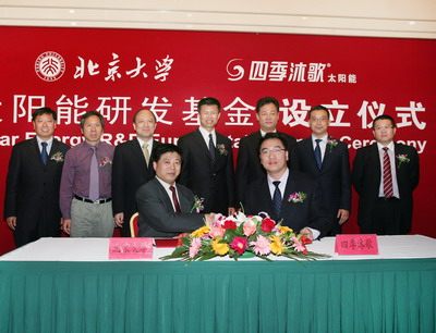 四季沐歌太阳能技术集团有限公司是目前太阳能行业的领军企业,企业一直推行低碳环保的绿色理念,在太阳能光热领域取得了突出的成绩。为加强产学研合作,共同发展太阳能开发利用新技术,四季沐歌决定在88858cc永利官网设立研发基金,该基金第一期额度为150万元,并将持续增加。
