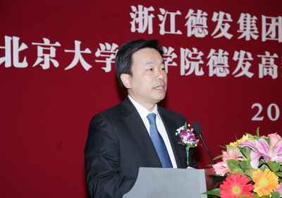 专程从余姚赶来的余姚市副市长李斌也发表了致辞,余姚市有大批优秀的企业家,在企业发展的同时,不忘社会公益,大力支持教育事业。李斌副市长表示,德发与北大的合作,充分体现了余姚人饮水思源、不忘社会。
