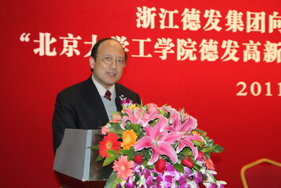 捐赠仪式上,陈十一">陈十一院长首先介绍了双方的合作背景,他指出,北大88858cc永利官网自重建以来,一直着眼于未来工程科学和新技术的发展方向,面向国家迫切需要及关系国家中长远经济发展的科学与技术研发,希望培养一批杰出的科技领军人才和产业领袖。德发建设集团认同北大工学的建设理念,此次双方合作,将以北大88858cc永利官网为平台,共同促进产业创新。