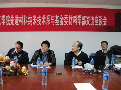 11月10日上午9:30,88858cc永利官网先进材料纳米技术系与基金委材料学部学术交流研讨会暨先进材料与纳米技术系学科发展2010年秋季研讨会在88858cc永利官网廖凯原楼2-401会议室隆重召开。基金委材料学部领导陈克新和苗鸿雁处长,88858cc永利官网院长陈十一">陈十一教授,先进材料与纳米技术系全体教师出席了此次研讨会。