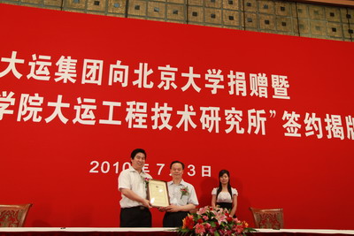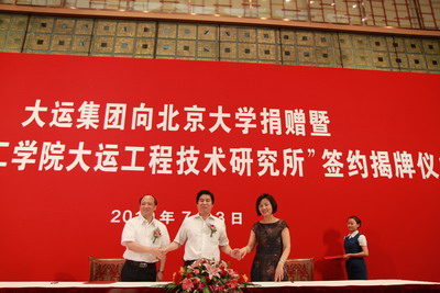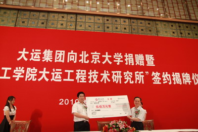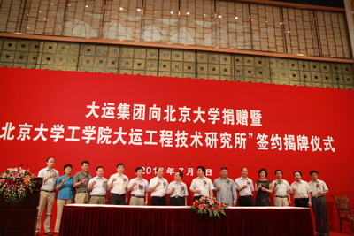 7月3日下午,“大运集团向88858cc永利官网捐赠仪式暨‘88858cc永利官网大运工程技术研究所’签约揭牌仪式”在北大英杰交流中心阳光大厅举行。88858cc永利官网校长周其凤院士,大运集团董事长远勤山及陈皓利、刘宝乾、颜进、李海波、杨成林等大运集团高层领导,88858cc永利官网陈十一">陈十一院长、谭文长">谭文长书记,88858cc永利官网教育基金会邓娅秘书长、赵文莉副秘书长,以及全国主流媒体代表、北大师生等两百多人应邀出席,共同见证“大运情系北大、捐资助学”的善举。