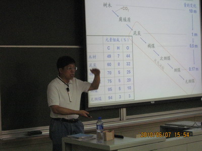 在同学们热烈的掌声中,刘振宇教授开始了精彩的演讲。刘教授从煤炭的起源讲起,首先介绍了煤的基本知识,然后重点介绍了有关煤炭转换利用的前沿科学技术,尤其是煤气化和液化的最新科研成果。刘教授分析了煤液化过程中遇到的问题、发展瓶颈和关键技术,开拓了同学们的眼界,也加深了同学们对煤炭这种传统化石能源的了解。