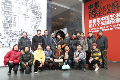 据资料介绍,“798 艺术区”是原国营 798 厂等电子工业的厂区所在地, 1950 年代由苏联援建、东德负责设计建造的重点工业顶目,它见证了新中国工业化的历程。随着汽车驶入艺术区,映入老师们眼帘的正是采用现浇混凝土拱形结构、具有典型的包豪斯风格的建筑。步行至“尤伦斯当代艺术中心”,醒目的红色不时地提醒着来往的人群:时下展览的主题是“中坚—新世纪中国艺术的八个关键形象”。
