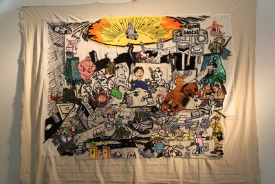 “中坚”展出的八位艺术家的当代艺术作品,讲述了当下的历史,讨论了中国目前正在发生的事,是对不同态度、不同创作语言进行的一次考察。如孙原&彭禹的作品《孙原&彭禹》,通过装置讲述“各自单独想一个东西,把它们放在一起,形成一种类似表述的关系”;没顶公司的作品《只要一瞬间》用一些从现场看去失去重心即刻摔倒的人,在实际空间中被“固化”在一个时间片段,揭示了人的自我生存状态的不确定性和观看与体验的真实性;而《帝国感应篇》则包容了一个空间从理想到实现,以及在生活中持续的全部过程。所有这些艺术作品,通过不同的艺术表现形式,讲述了他们各自对于当代政治、经济、文化和社会的理解和感悟。