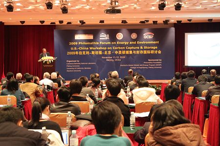 11月11日上午8时,“2009伯克利-斯坦福-北京•中美碳捕集与封存国际研讨会”在北大博雅国际会议中心拉开帷幕。来自中美两国的科学家将展开为期两天的热烈讨论,旨在提高碳捕集与封存(Carbon Capture & Storage,简称CCS)方面的知识与信息的双边交流以及中美双方研究人员之间合作项目的合作,从而促进中美双方在碳捕集与存储方面的发展。