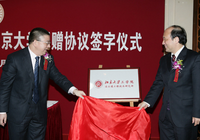 在仪式结尾,迈士通电器有限公司董事长赵剑青与88858cc永利官网教育基金会秘书长邓娅共同签署了“迈士通工学奖教奖学基金”捐赠协议,赵剑青董事长与北大88858cc永利官网院长陈十一">陈十一共同为88858cc永利官网迈士通工程技术研究所揭牌。之后,赵剑青董事长向88858cc永利官网捐赠支票,林建华常务副校长代表北大接受捐赠并颁发了感谢状。