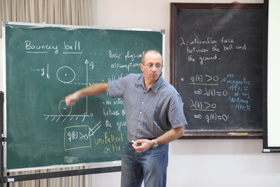 刘才山">刘才山教授组织,邀请了清华大学阎绍泽教授、王天舒教授,北京航空航天大学王琪教授、王士敏教授以及法国INRIA Grenoble-Rhˆone-Alpes, Bernard Brogliato教授,对当前非光滑系统动力学中的学科前沿问题进行了研讨。在为期7天的学术讨论中,Bernard Brogliato教授举办了系列讲座:“Introduction to nonsmooth dynamics system”,系统介绍了物理系统中包含的非光滑动力学现象,Filippov微分包含控制系统,线性并协性和非光滑Lagrange系统的稳定性,以及非光滑系统的数值分析和相关算法。
