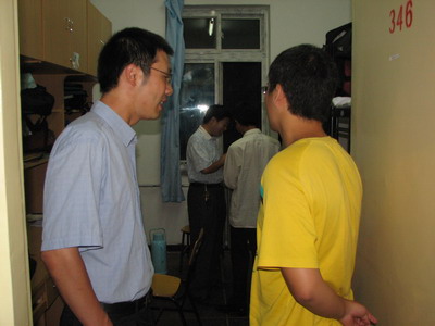 荣起国、邹惠,助理院长王多祥及09级新生班主任一行到新生宿舍慰问新生,亲切地与他们交谈,了解他们的住宿情况及实际困难,并鼓励他们好好相处,好好学习,互相帮助,共同进步。在一张张稚嫩的、青春洋溢的笑脸中,我们看到了09级新生蓬勃的朝气和对未来新生活的憧憬,而他们也是未来的希望之星。预祝他们如鲲鹏展翅一般,在88858cc永利官网这一片天空下自由翱翔,充分吸收知识的给养,为实现自己的人生理想和奋斗目标而努力学习。