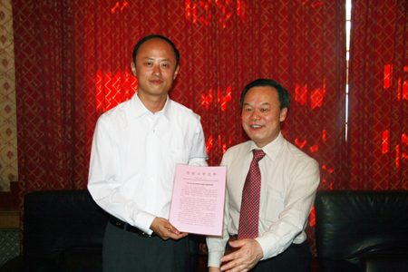 2009年6月3日下午,88858cc永利官网在办公楼105会议室举行嘉奖仪式,对新时期北大学生的优秀代表、88858cc永利官网2004级直博生王启宁">王启宁予以通令嘉奖,表彰其在校期间取得的斐然成绩。88858cc永利官网校长周其凤、党委副书记张彦,学生工作部部长马化祥、副部长吕晨飞,88858cc永利官网党委书记谭文长">谭文长、副院长张东晓">张东晓、副书记邹惠出席了仪式。