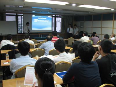 “苹果—移动教学研究”开启了本次答辩的序幕,这是陈晓理等三位北大88858cc永利官网同学和四名中央美术学院学生合作开发的移动学习系统,主要用于在手机等移动平台上观看课程录像并与老师和同学进行实时交流,使得任何人都可以在自己方便的时间、地点参与自己想要的课程。三位同学交替上阵,向在座的老师和旁听答辩的同学讲解了自己在这一课题中所分工的研究工作,形象地展示了这一系统的原理及使用。