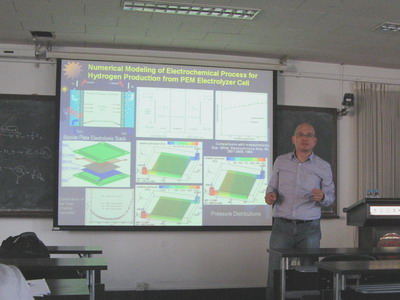 张信荣教授主持的有关太阳能产氢系统的讲座在力学楼会议室召开,来自UNLV(University of Nevada ,Las Vegas)的Yitung Chen 教授以及Jianhu Nie博士做了精彩的报告。