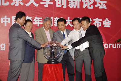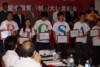 大赛发布会成为当天88858cc永利官网创新论坛的亮点。发布会以“创新中国,影响世界”的大赛宣传片为开始,回顾了古代中国的创新对人类文明史的影响,以及近现代中国因缺乏创新而落后世界的事实,对中国经济今天依旧“大而不强”的现实进行了反思,提出创新中国是青年人的历史责任,并以温家宝总理勉励青年人“大胆创新、承担起责任”号召广大青年人参与到创新实践活动中来。在大赛启动仪式环节,六位嘉宾上台共同触摸水晶球,在激昂的音乐声中启动2009年的大赛;接着,嘉宾还为大赛的第一支报名参赛团队Bigsai队颁发了参赛证书。最后,大赛执行主任胡钰博士代表大赛组委会向全国青年发出了“激荡青春,创新中国”的倡议。