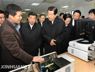 3月28日上午9:30-10:00中共中央政治局常委、全国政协主席贾庆林同志和中共中央政治局委员、国务院副总理回良玉同志以及江苏省委书记梁保华、省长罗志军一行来无锡调研时来到了无锡生物医药外包服务园区。在园区中他们视察了园区的规划和4家入住的单位,其中在88858cc永利官网精密医疗仪器研发中心逗留了十几分钟。