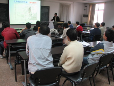 戴兰宏研究员报告的题目为“shear band and fracture in bulk metallic glasses”。他系统地介绍了大块体金属玻璃剪切带的形成和断裂能耗散的物理机制。报告会引起了大家强烈的兴趣,师生踊跃提问,反响强烈。