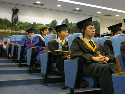 在毕业典礼上,同学们还别出心裁的制作了一个简短DV,在DV中同学们记录了从迈入大学校门的那一刻起,学习生活中无数的美丽精彩瞬间,以此来纪念幸福的大学时光。
