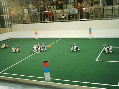 5月11日至15日,由88858cc永利官网智能控制实验室组建的sharPKUngfu机器人足球队应邀参加了2006苏州国际四足机器人表演赛。参加本次表演的还有来自澳大利亚悉尼科技大学、中国科学技术大学、同济大学和北京工业大学等多支国内外机器人队。本次表演赛旨在打造中国智能机器人研究精英团队,普及机器人知识,并为国内队伍参加国际比赛积累经验。同时,这次比赛也为各学校代表队创造了学习机会,让他们比赛中互相学习,取长补短。为期五天的表演赛获得了圆满成功,各学校机器人代表队的精彩表演赢得了在场观众的热烈掌声和一致好评。