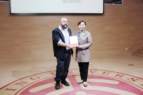 在问答互动环节,同学们纷纷踊跃提问,John Ioannis Bardakos博士就同学们关心的问题分别给出了专业解答。讲座结束后,李咏梅">李咏梅老师向John赠送书籍表示感谢。John 向同学们赠送亲笔签名海报并合影留念。