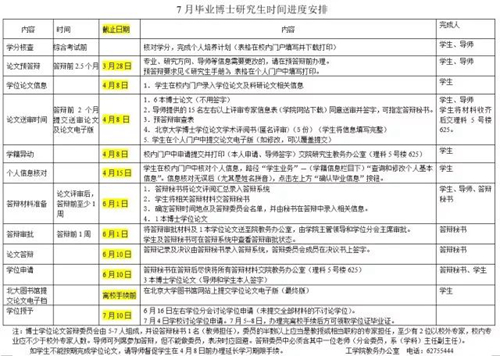示例二:7月份毕业博士研究生时间进度安排