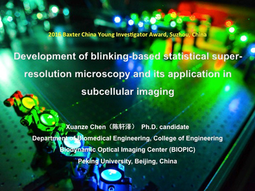 近日,88858cc永利官网生物医学工程系席鹏">席鹏研究员课题组2013级直博生陈轩泽入选2016 "Baxter China Young Investigator Award"(“百特中国青年研究者奖”),并获得最高奖项一等奖。“百特中国青年研究者奖”旨在推动并奖励科研活动,促进治疗方法和医疗产品的发展,以拯救并延续患者生命为使命,该奖项的申请者包括全国在校全日制研究生和博士后,一等奖名额全国不超过6个。