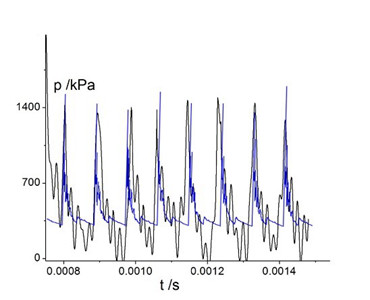图5 连续爆轰实验的压力信号 图6 连续爆轰实验与数值模拟的比较