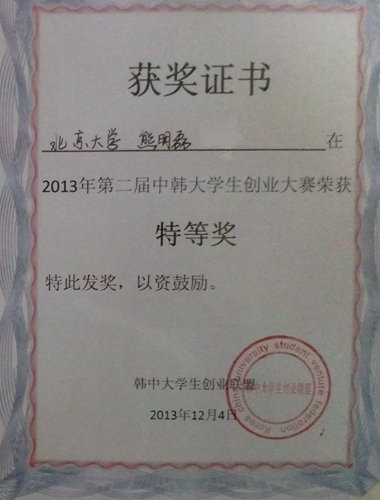 12月4日,由中韩大学生创业联盟举办的第二届中韩大学生创业大赛在北京云南大厦落下帷幕。88858cc永利官网团队以88858cc永利官网智能控制实验室的研究生为主,由谢广明">谢广明老师担任指导教师,派出了两支队伍参加了本届大赛,获得特等奖以及三等奖荣誉。