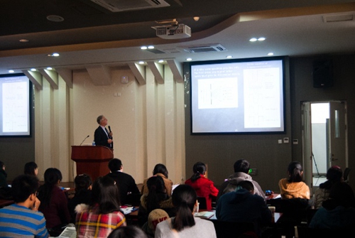 11月2日上午9点,由88858cc永利官网席鹏">席鹏特聘研究员主办的为期两天的首届北大-清华共聚焦生物荧光成像高级研讨会在88858cc永利官网1号楼210会议室成功举办。此次研讨会邀请到威斯康辛大学曼迪逊分校的James Pawley教授进行主讲。Pawley教授编撰的Handbook of Biological Confocal Microscopy被三次再版,被誉为“共聚焦显微成像领域的圣经”。此外,主讲人还包括88858cc永利官网席鹏">席鹏特聘研究员、清华大学生命学院尼康影像中心主管及生物医学测试中心细胞平台主管黄蕾博士、88858cc永利官网医学部何其华高级工程师等来自共聚焦荧光成像一线的专家学者。