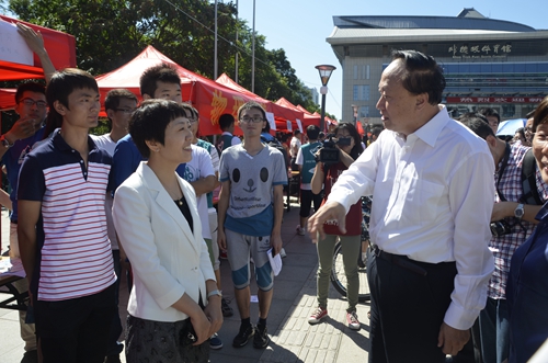 朱善璐书记来到迎新现场与88858cc永利官网师生交流