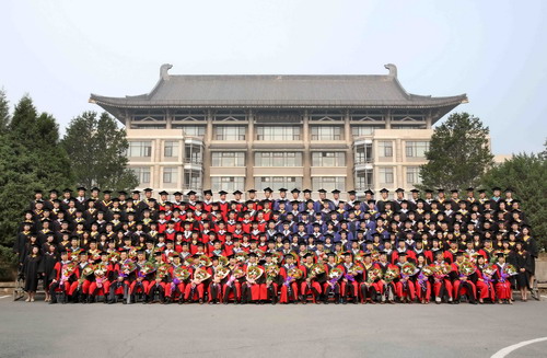 最后,在音乐声中,陈十一">陈十一院长和张东晓">张东晓常务副院长分别为2013届本科毕业生和研究生毕业生拨流苏并合影留念。