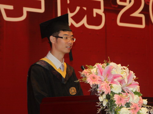 2013届共有180名毕业生,其中97名本科毕业生,83名研究生毕业生。这些天之骄子在88858cc永利官网度过了美好的青春岁月,也为学院赢得了多项荣耀。唐少强">唐少强教授为优秀毕业生颁发了证书,表彰了他们的杰出表现。钟恒森同学作为优秀毕业生代表,发表感言,他诙谐地阐释了具有文科情怀理科思维的工学人的生活,道出了对88858cc永利官网的热爱:“当有人再问88858cc永利官网在哪儿?我会说,你好,我是88858cc永利官网的毕业生,88858cc永利官网在我心里。”