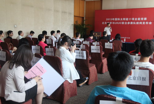 启动仪式后的新闻发布会上,国际太阳能十项全能大赛中国组委会代表田原和北大SD赛队代表廖静秋分别介绍了大赛的理念和北大SD赛队项目进展情况。廖静秋强调,SD赛队成员致力于一座智能房屋,它能够借助先进的自动控制和远程控制系统帮助居住者在快节奏的现代生活中游刃有余,“宜所”可以为主人提供智能的资讯播报,并在满足日常居住所需能源的前提下,保持室内适宜的温度和湿度。
