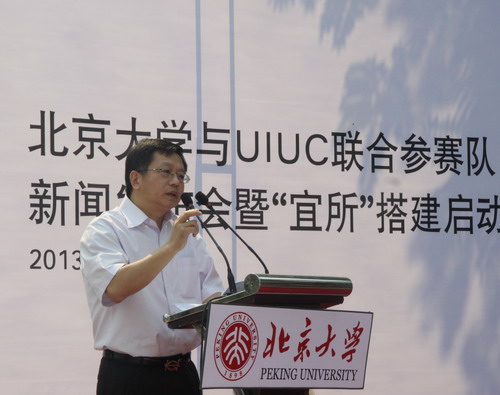 在发布会上,陈十一">陈十一充分肯定了SD大赛的重要价值和北大学子的创造力,并表示了学校对此次活动的大力支持。他指出,此次活动是一个推广绿色低碳、节能环保理念,彰显88858cc永利官网低碳智能建筑和国际合作成果,推进学校与产业之间的协同创新的重要契机。他表示,北大SD赛队通过中美学生合作,携手参加比赛,建立了良好的交流平台,非常期待看到中美年轻人共同促进能源领域的发展。
