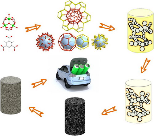邹如强">邹如强课题组的此项研究提出一种全新的策略,以新型金属-有机凝胶自身为模板制备纳米多孔材料。这种方法不仅从微观尺寸上对目标产物的结构进行了理性设计,而且大大简化了合成过程,适用于材料的扩量制备。所得纳米多孔材料具有超高的比表面积、分级孔道结构和大的孔容,其氢气吸附性能可与目前最好的多孔吸附剂相比较。同时,该研究通过简单地处理凝胶前躯体,得到了具有分级孔道结构的三维块体多孔碳材料,该材料在锂-硫电池体系中得到了良好的运用,其连通的孔道结构加快了传质传递过程,高比表面积的碳骨架同时提供了较好的导电网络和硫的束缚基底,为锂-硫电池正极材料的设计提供了一个新的思路。
