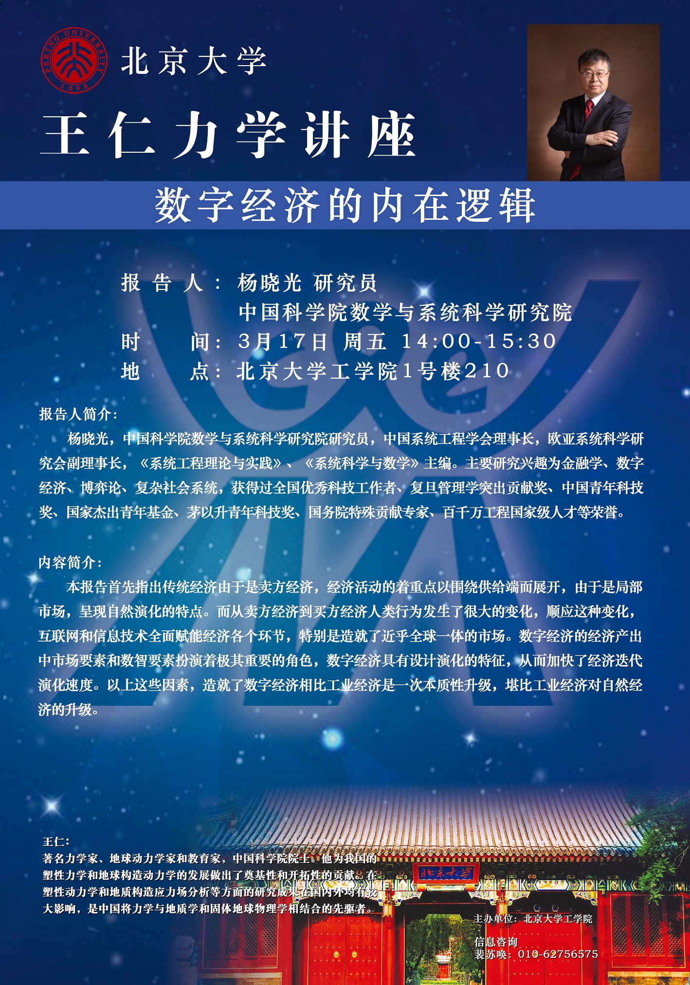 王仁力学讲座【3月17日】:数字经济的内在逻辑
