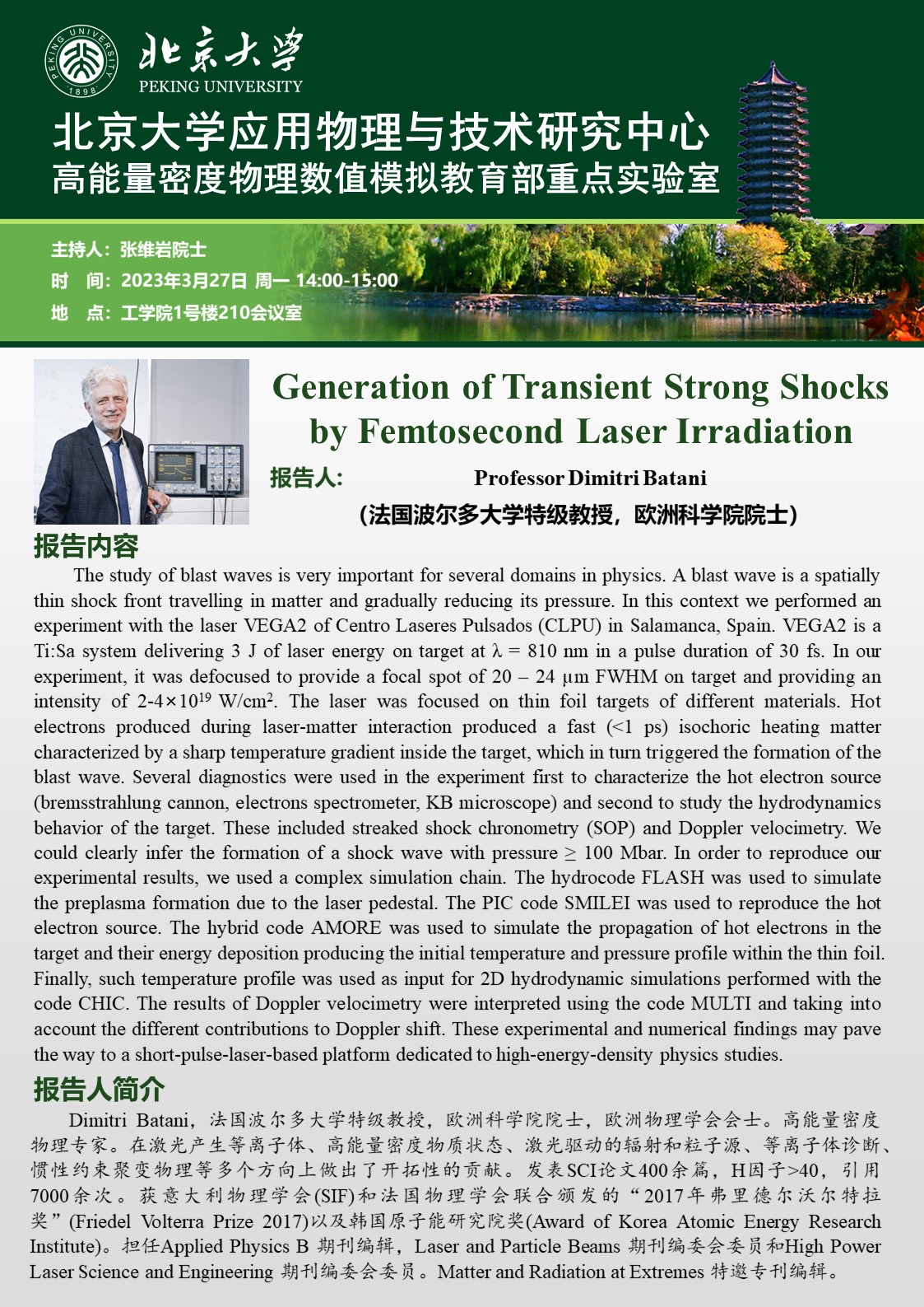 (2)报告人:Dimitri Batani(法国波尔多大学特级教授,欧洲科学院院士)