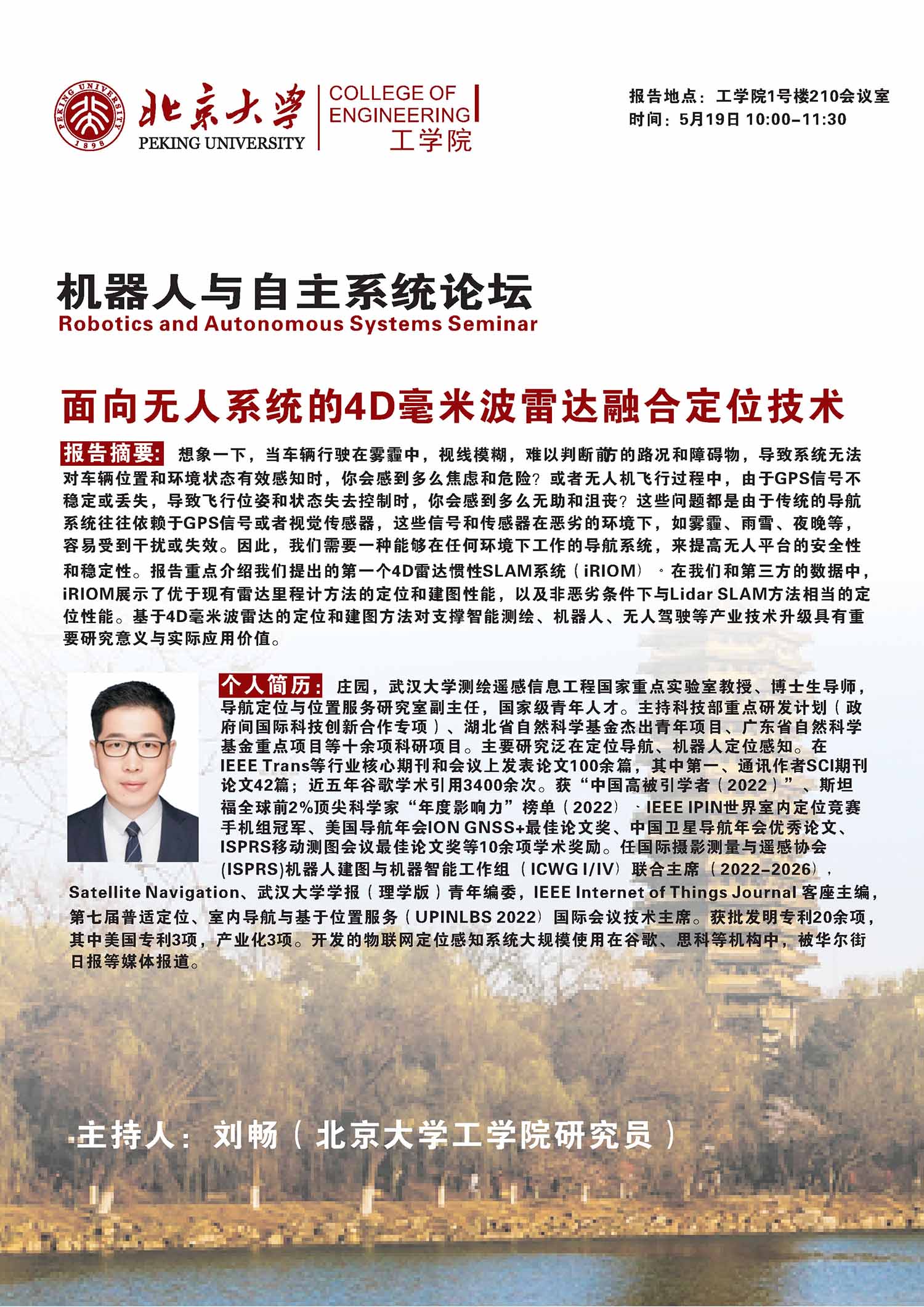 机器人与自主系统论坛【5月19日】:面向无人系统的4D毫米波雷达融合定位技术