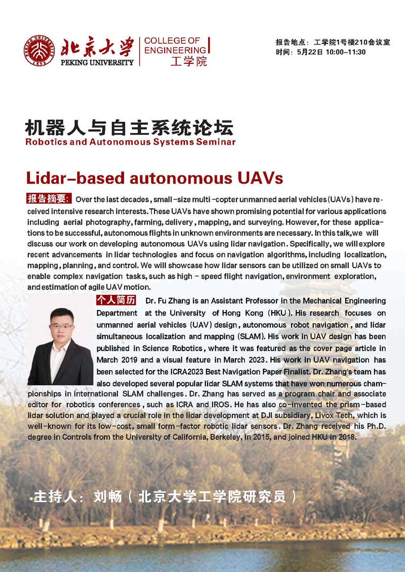 机器人与自主系统论坛【5月22日】:Lidar-based autonomous UAVs