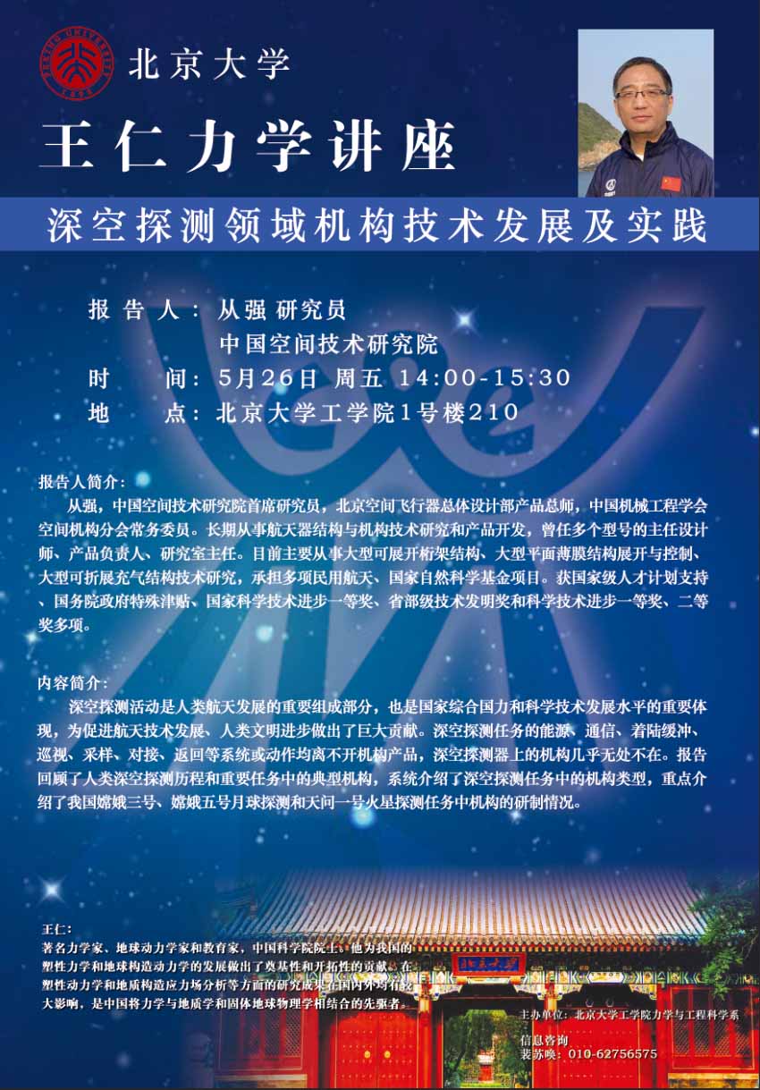 王仁力学讲座【5月26日】:深空探测领域机构技术发展及实践