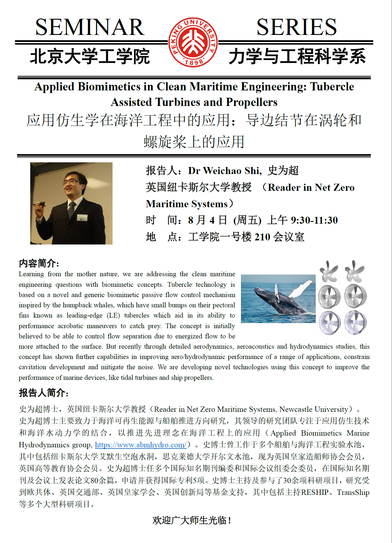 力学系学术报告【8月4日】:应用仿生学在海洋工程中的应用:导边结节在涡轮和螺旋桨上的应用