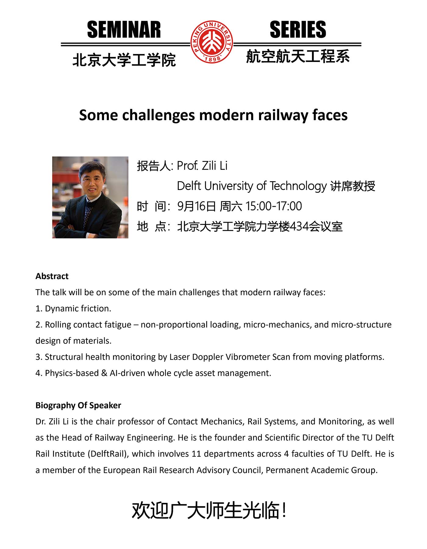 航空系学术报告【9月16日】:Some challenges modern railway faces