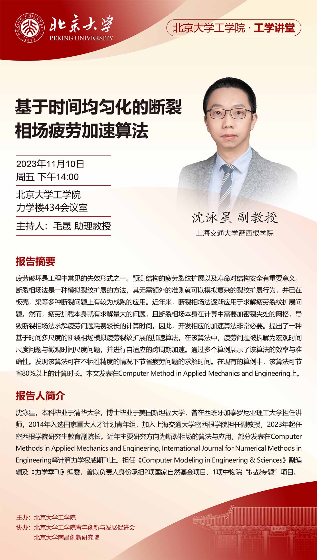 工学讲堂【11.10 沈泳星】:基于时间均匀化的断裂相场疲劳加速算法