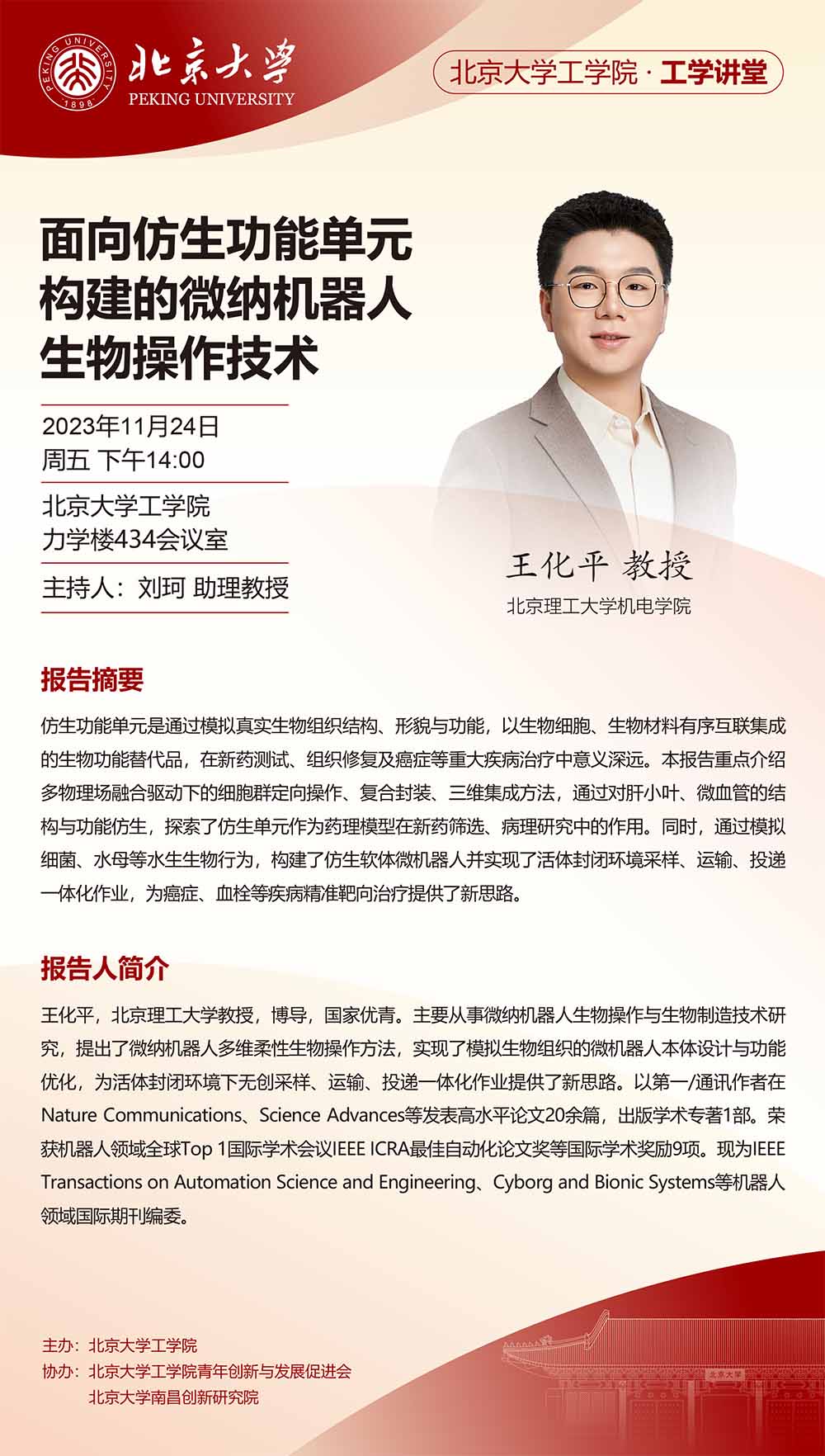 工学讲堂【11.24 王化平】:面向仿生功能单元构建的微纳机器人生物操作技术