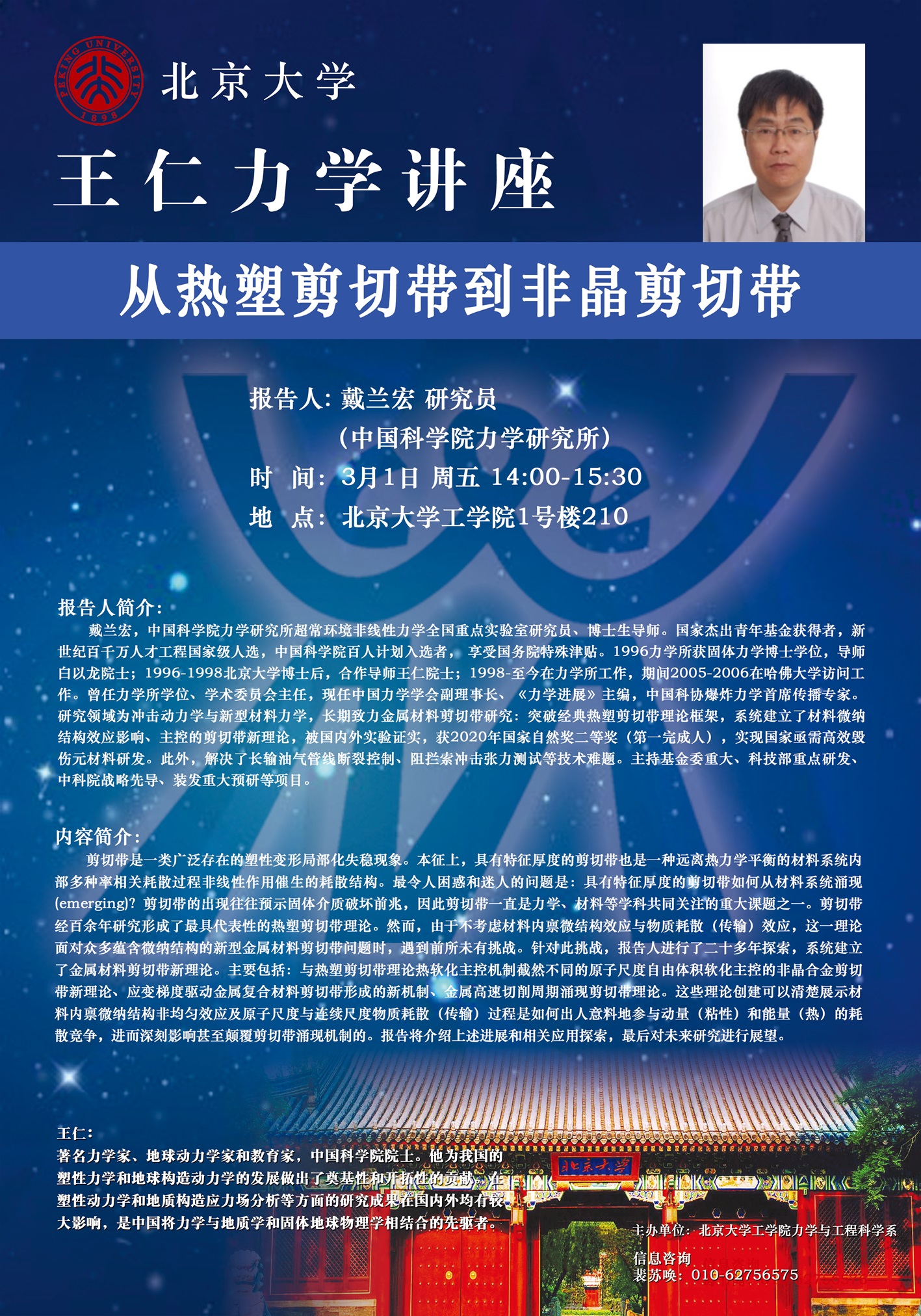 王仁力学讲座【3.1戴兰宏】:从热塑剪切带到非晶剪切带