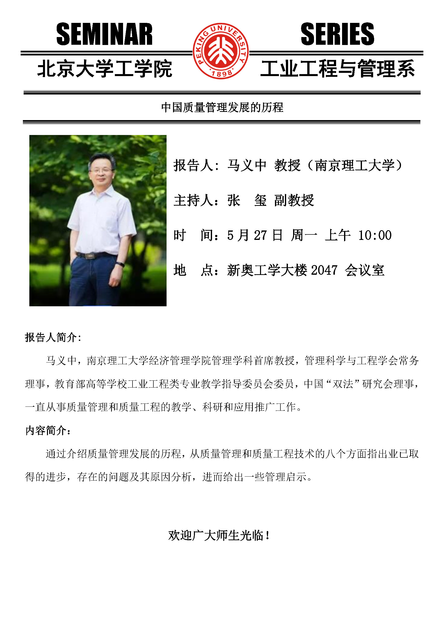 工管系学术报告【5.27马义中】:中国质量管理发展的历程